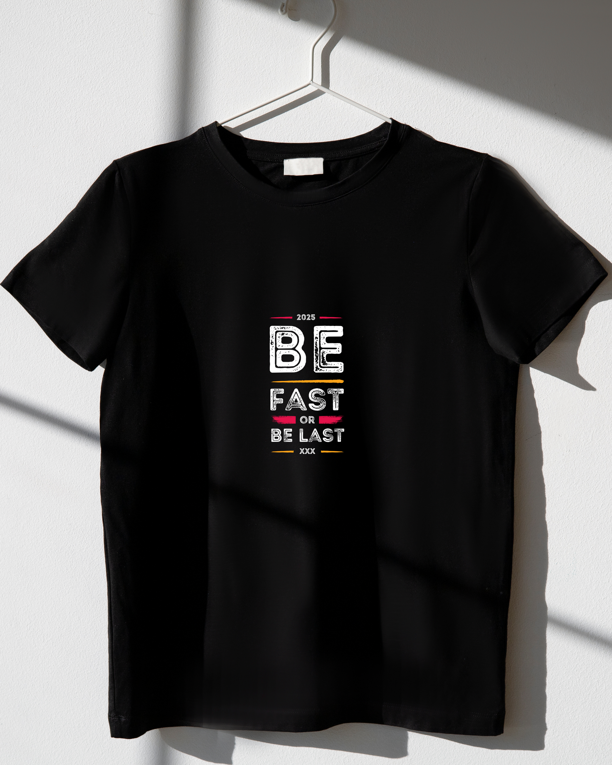 Fuel your hustle with the "BE FAST OR BE LAST" tee — made for go-getters, racers, and anyone who lives life in the fast lane. With its striking design and premium cotton comfort, this t-shirt is built for those who don’t slow down, don’t settle, and definitely don’t finish last.
