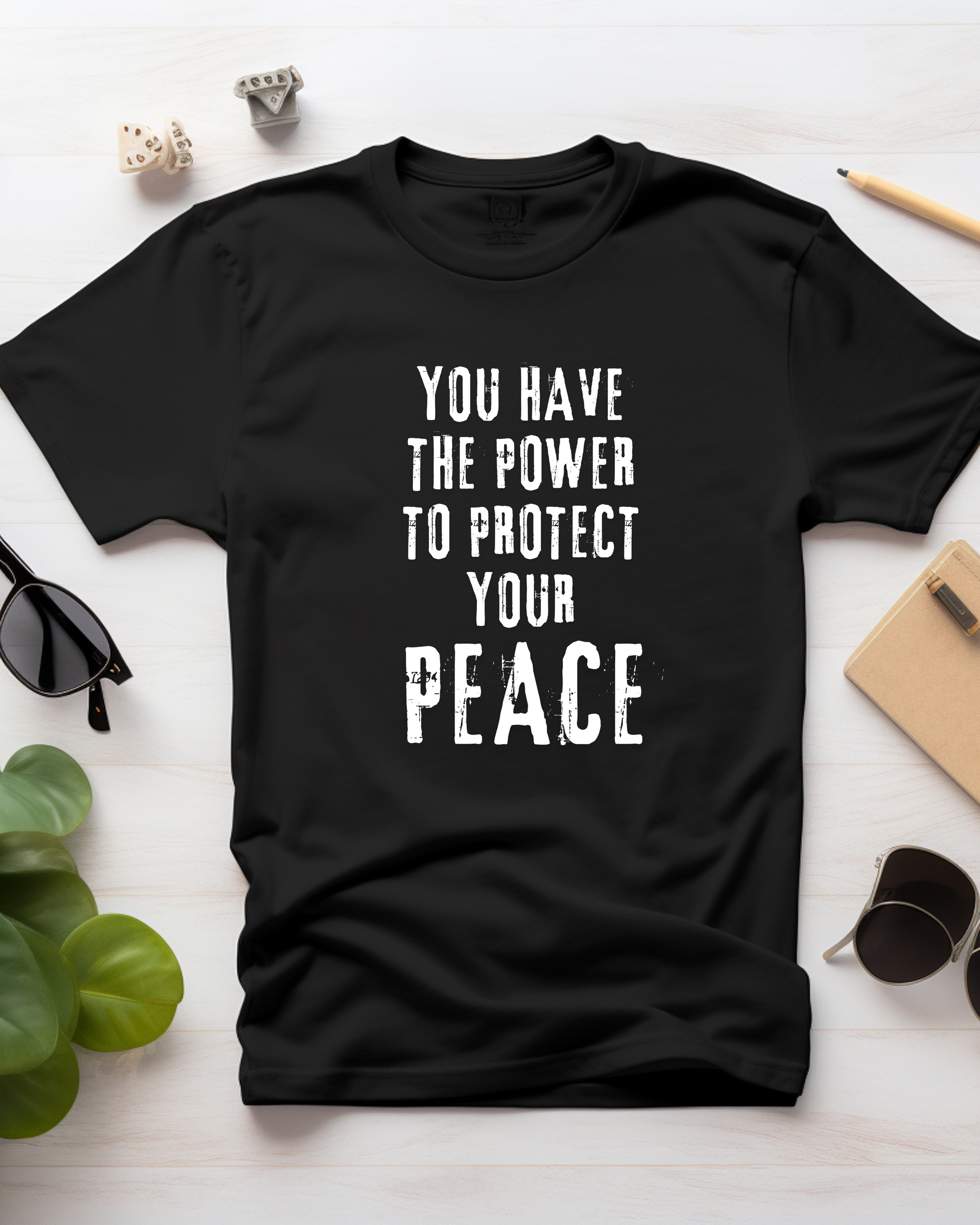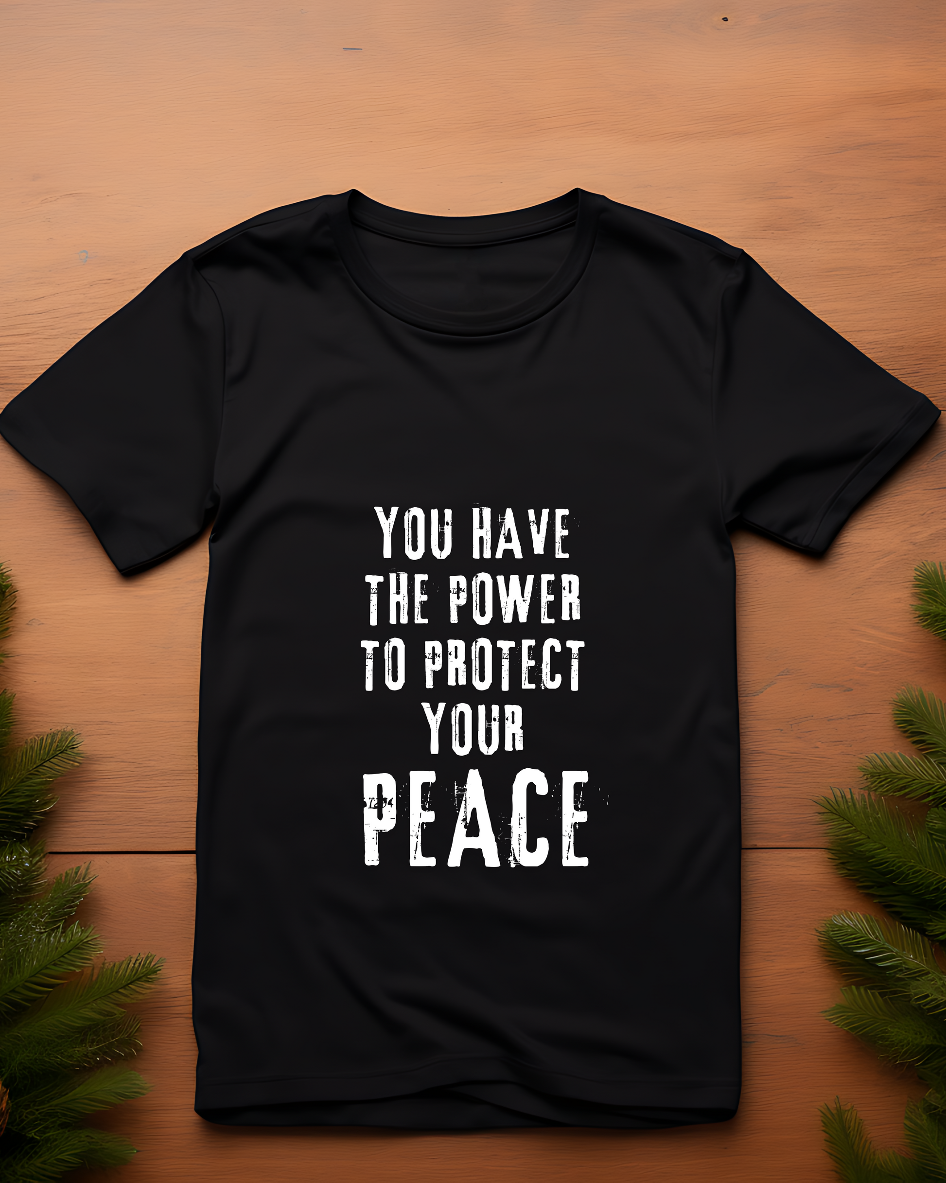 Let the world know where you stand—with calm, confidence, and clarity. The "YOU HAVE THE POWER TO PROTECT YOUR PEACE" t-shirt is more than just style; it’s a personal mantra. Made for those who value their energy, set boundaries, and radiate inner strength, this tee reminds you (and everyone else) that peace is your power.