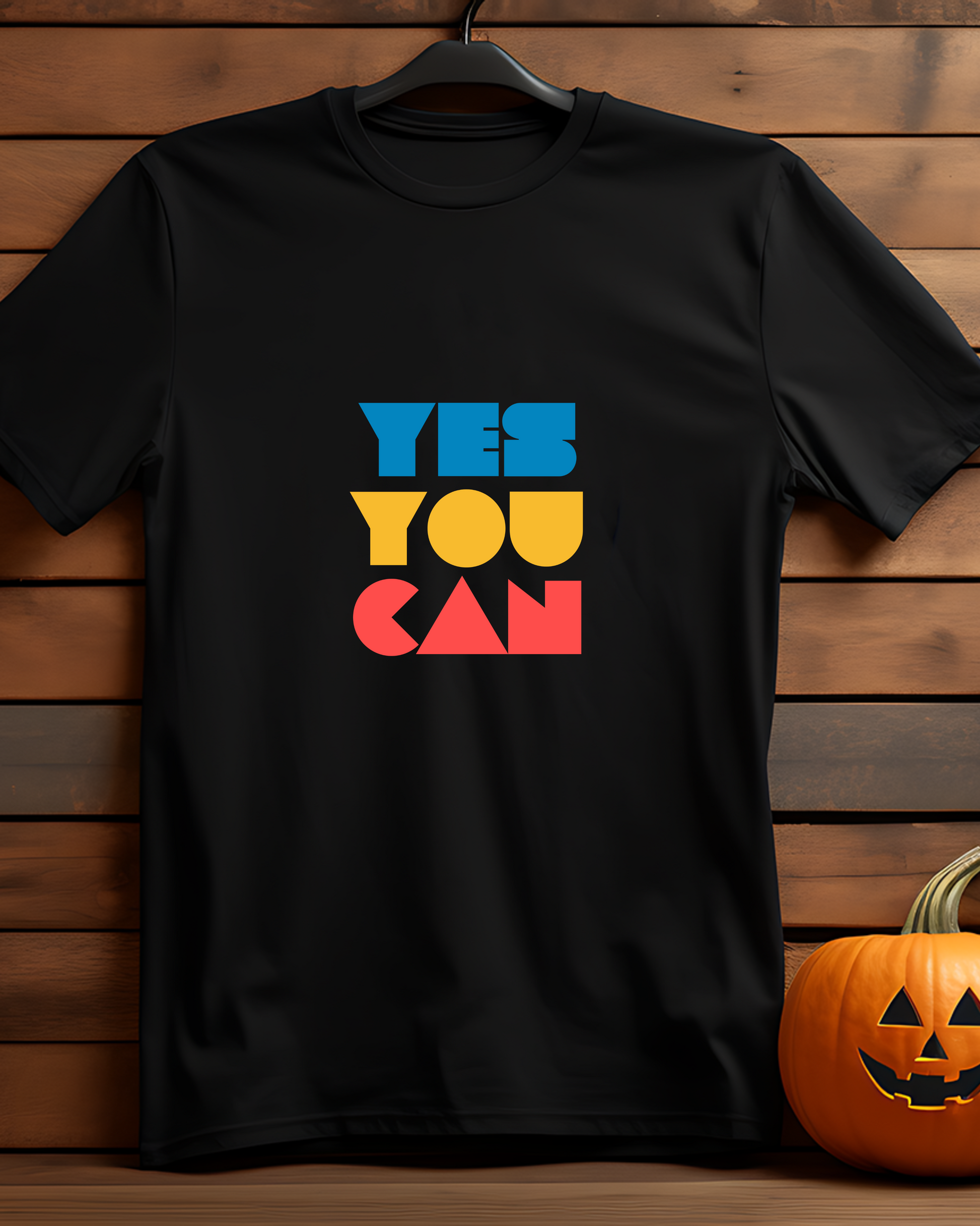 ✔ Motivational “YES YOU CAN” Print: A bold and inspiring design that uplifts your vibe and sparks confidence.